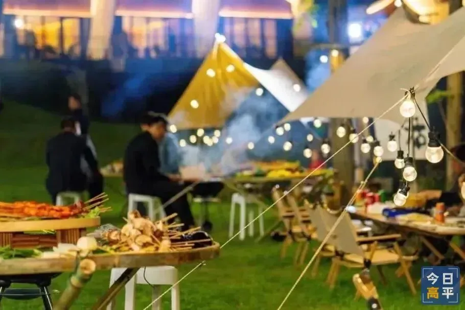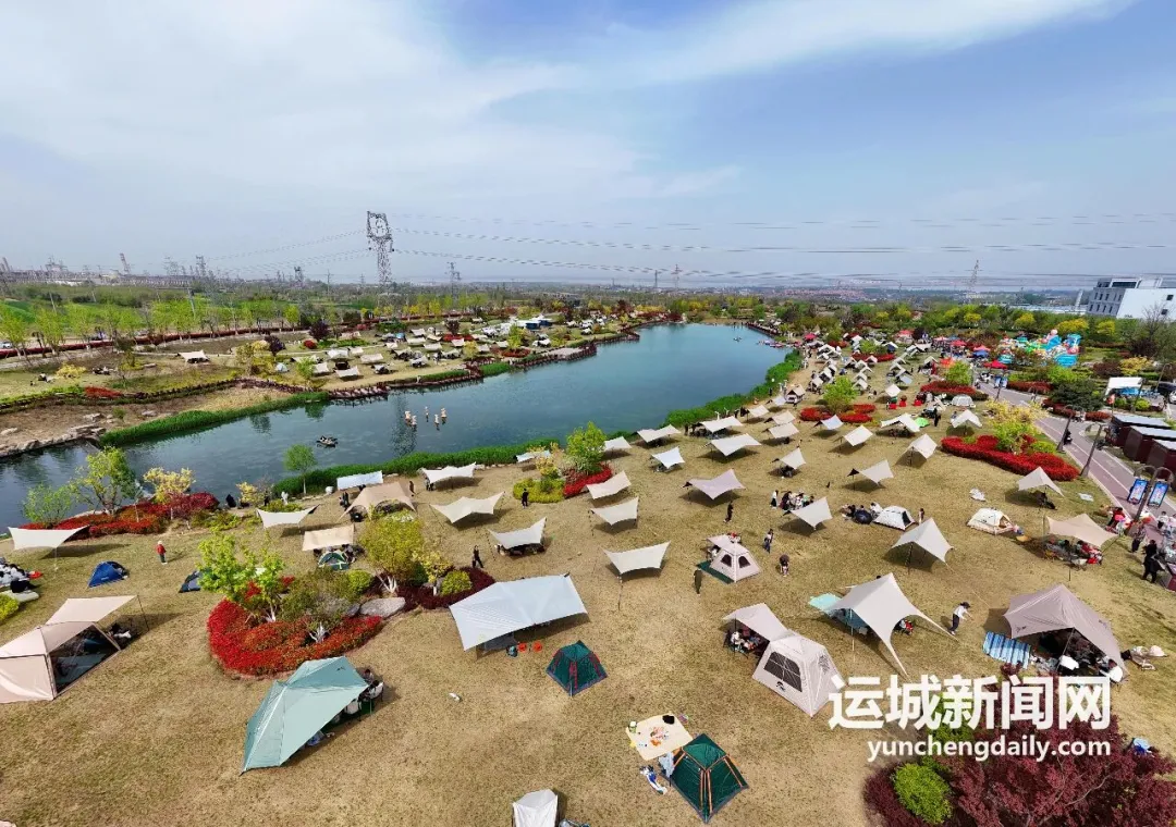 露营区内,一顶顶白色帐篷临湖而立,与青翠草坪相融成景。支起天幕、摆好桌椅,围坐野餐闲谈,惬意满满;孩子们在草地上自由奔跑、嬉笑打闹,把整个春天的热闹与温柔都藏在这里。