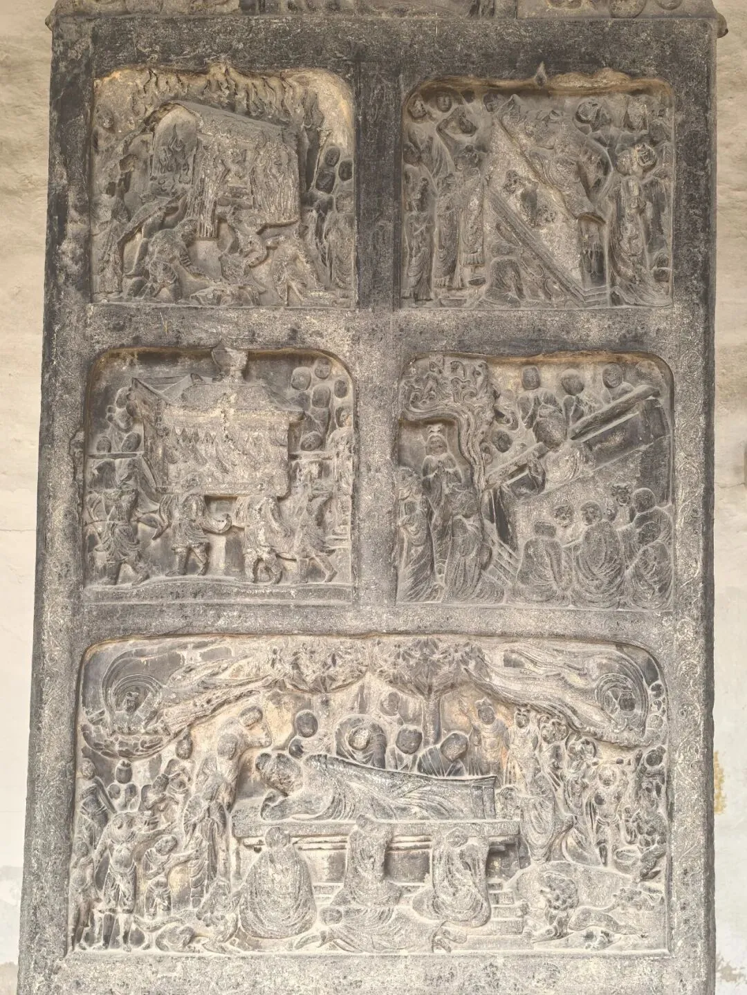 又到了勃勃生机万物竞发的春日时分,赶在山西年卡即将到期之时,张导又一次率队,在一年之内三入山西,这次主要走晋东南线。在正式开启晋东南线之前,我会花几天补一下太原几个点,再走一下汾阳和阳泉。纯阳宫本是第一次山西行里的行程,但由于时间原因最后未能成行,于是这次在太原逗留期间,必须补上。山西有三座纯阳宫,分别被称为“南宫”“中宫”和“北宫”。南宫在芮城永乐宫,中宫即太原纯阳宫,北宫是大同纯阳宫。太原纯阳宫位于太原市中心五一广场附近,旁边就是山西饭店。纯阳宫是第七批国保单位,也是山西古建筑博物馆和山西省艺术博物馆,曾是山西省博二部,在现在这个山西博物院修建好之前,一部分的文物是陈列在此地的。涅槃变相碑,首批禁止出境文物之一。这块碑地位如此之高的原因是和中国唯一一位女皇帝武则天有关。武则天为确立其统治的合法性,遂利用《大云疏经》宣称“弥勒下生”,各地修建大云寺,而其子李显称帝后下令焚毁大云寺。这块涅槃变相碑由于其所在的大云寺彼时改名,遂得幸逃过劫难,是目前所知的孤品。而其他的石碑和石刻也很有特色。这块姤神碑,讲的就是介子推妹妹介山氏的故事。介子推相关的故事,我们在绵山篇里有提到。纯阳宫三绝的第二绝就是九宫八卦院,要飞无人机才能拍出全景哈。而第三绝就是常阳天尊相,同样是首批禁止出境文物。这个地位如此之高,我其实有点不是很能get。