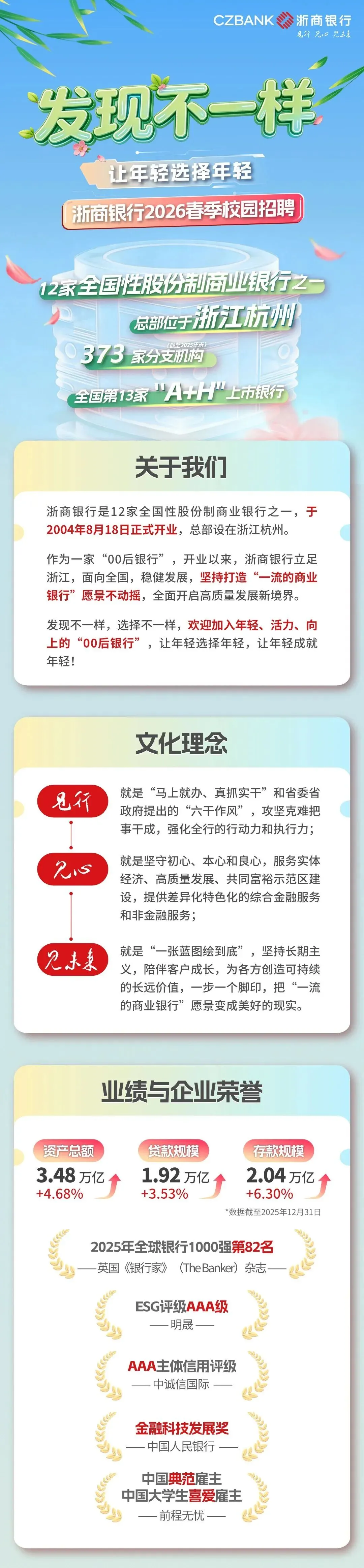 春风正好,与浙同行 | 浙商银行2026春季校园招聘正式启动