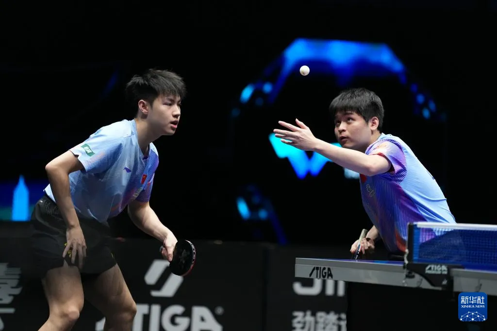 林诗栋(右)/黄友政在比赛中。 图片来源:新华社