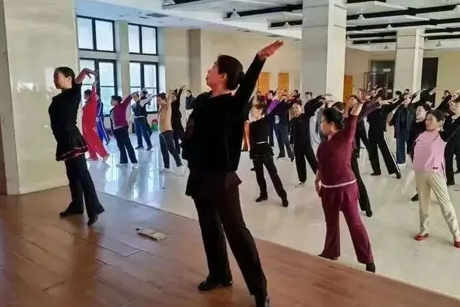 总教练张巧花携两位助教倾心授课,从动作要领到节奏韵律细致讲解,将文化自信融入舞步,把健身理念传进银龄心间。学员们精神饱满、全情投入,举手投足间舒展大气,舞出山河锦绣、城乡蝶变的时代画卷,尽显新时代老年人昂扬向上的精神风貌。