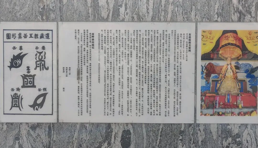 庙内有《南畔泰山庙记》,详述庙宇沿革:始建于明洪武二年,历经修缮,于2018年迁建于此,承载着南畔数百年的信仰传承。