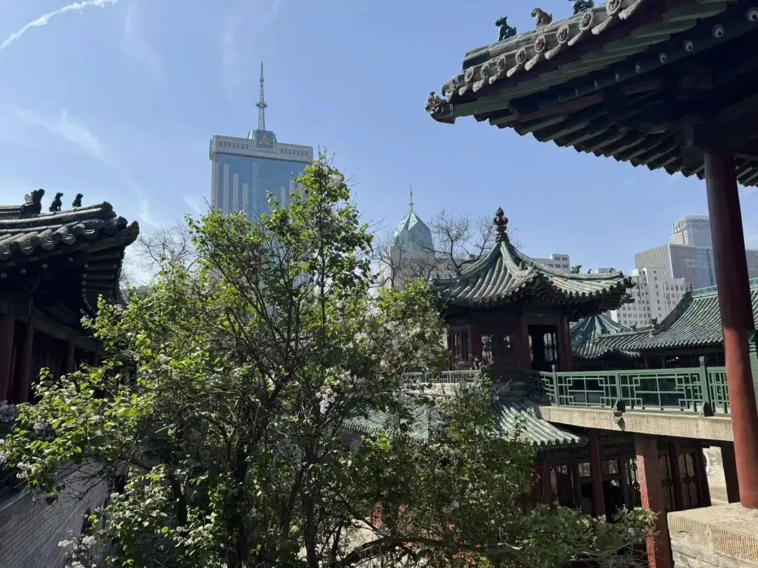 - 整体建筑红墙绿瓦,飞檐斗拱,与现代高楼形成鲜明对比,闹中取静,别有洞天