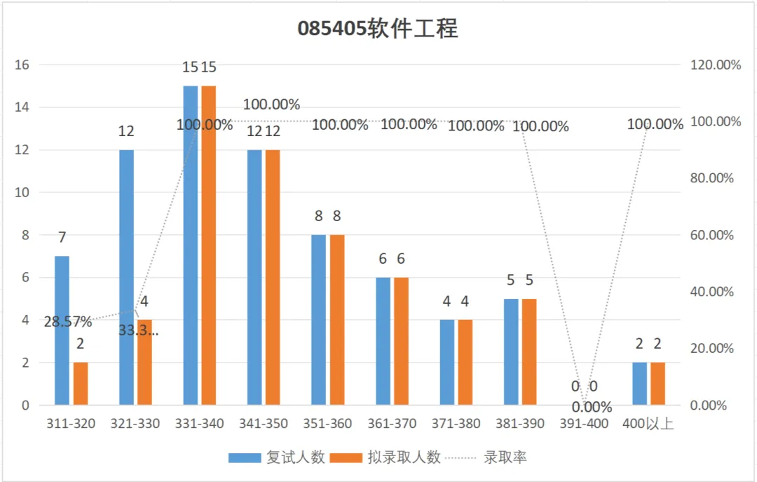 083500软件工程:复试2人,拟录取2人,总分为299,337。无。