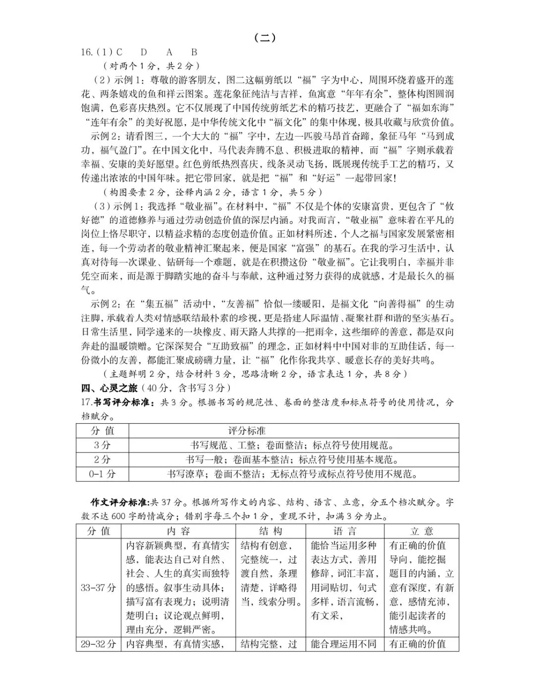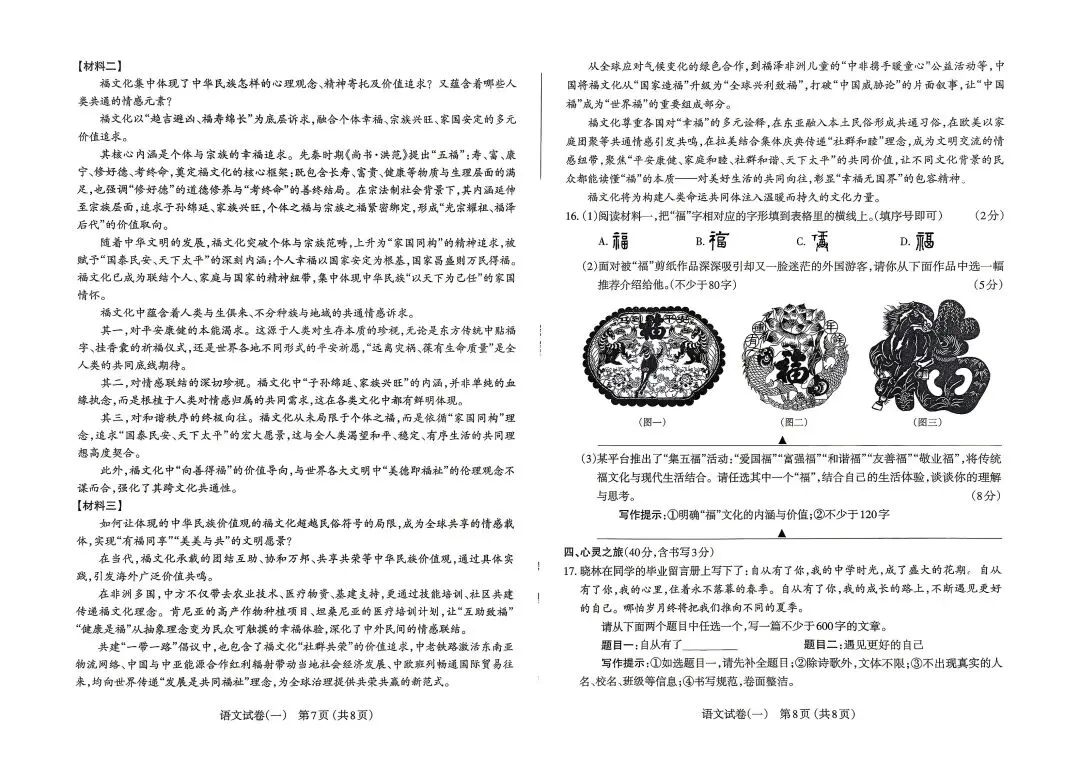 在审美创造素养的培育上,试卷通过文学性内容与创意表达任务实现渗透,毕业季主题的小诗补写、文学文本的情感品读、福字剪纸作品的介绍与赏析等内容,引导学生感受文学语言之美、传统文化之美、青春成长之美,鼓励学生在理解的基础上进行个性化表达与创意创作,让学生在审美体验中提升审美鉴赏与创造能力,落实了课标对审美素养的培养要求。