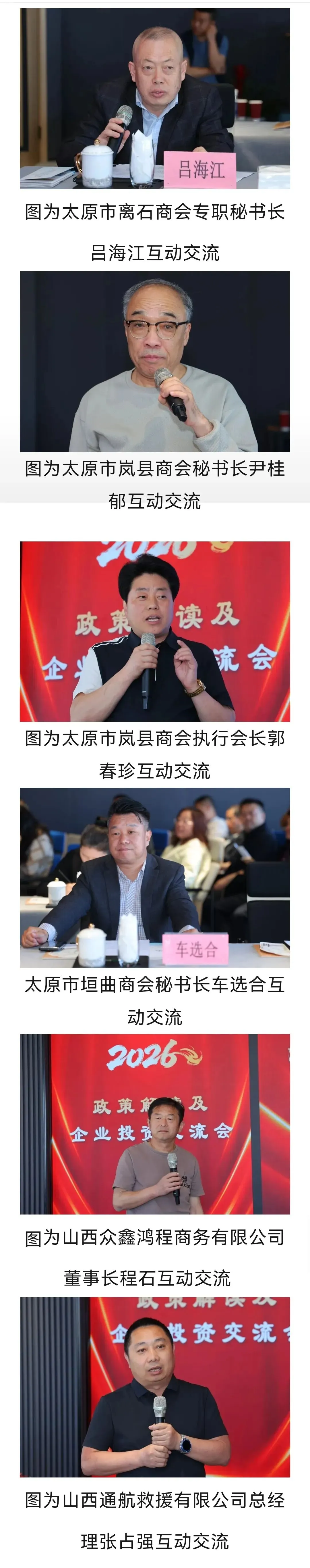 活动现场互动氛围热烈,太原市垣曲商会秘书长车选合代表商会发言,结合中小企业发展实际,就如何精准对接2026年政策红利、县域商会在跨区域资源整合中的作用等议题分享务实见解,为会员企业争取发展机遇、搭建合作桥梁,获得与会各方高度认可。商会组织的6家会员单位代表全程参与交流,围绕政策落地细节、投资申报流程、企业发展痛点等核心问题与嘉宾深入探讨,精准对接发展需求,收获满满。