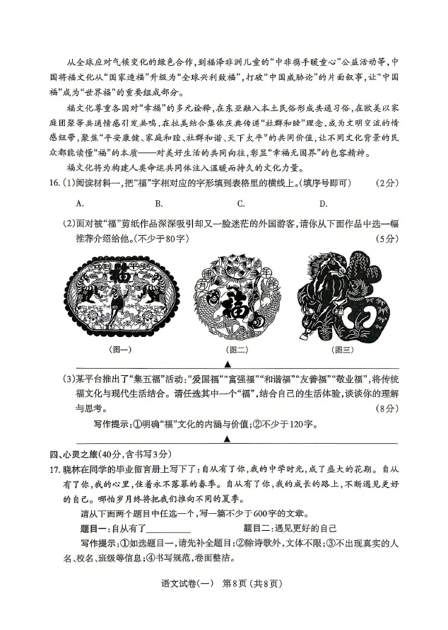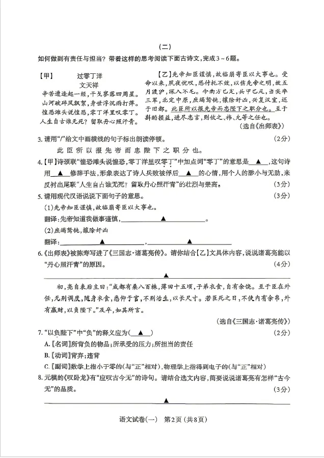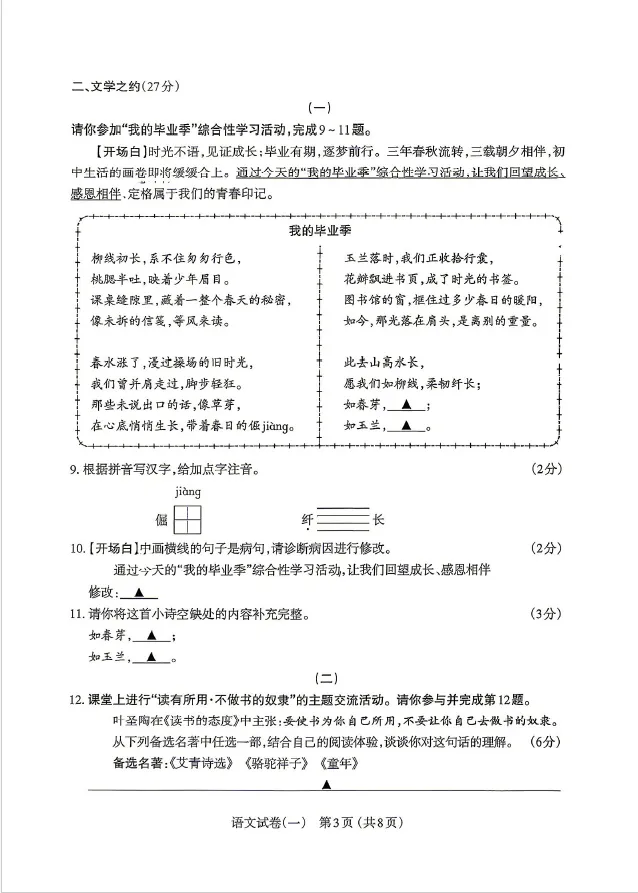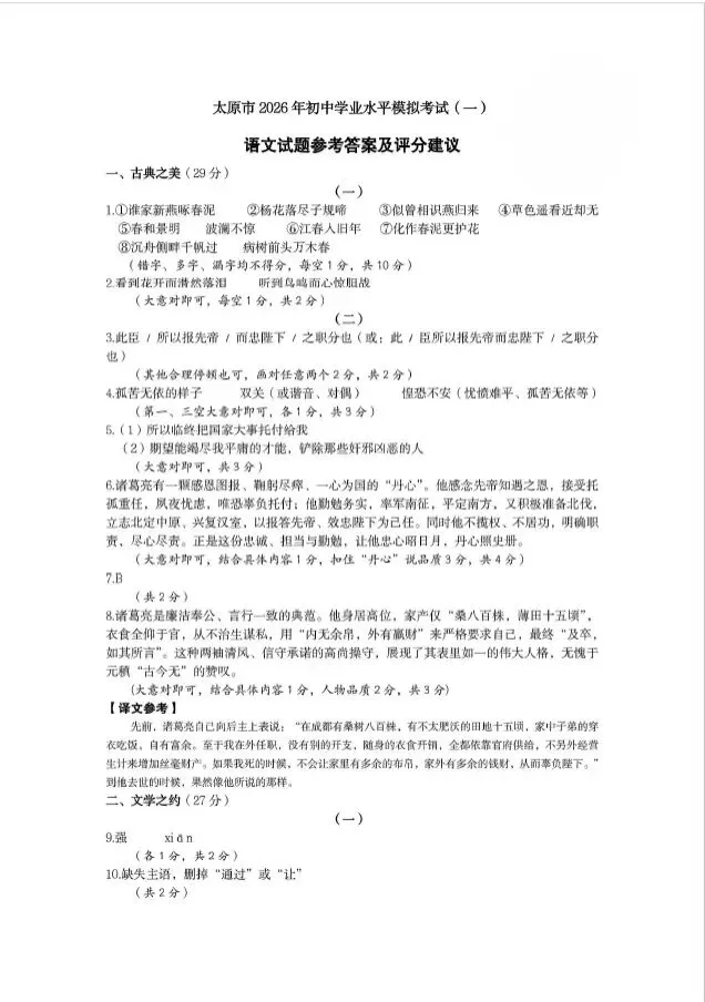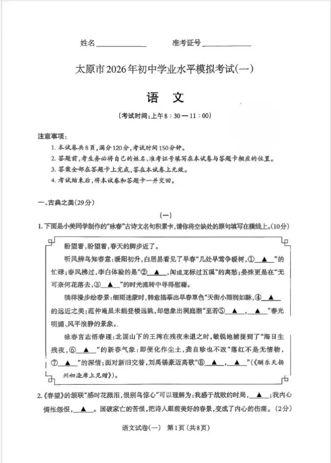 >来了!太原市2026年初中学业水平模拟考试卷+答案