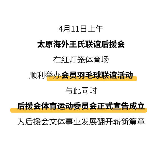强身聚力,“羽”你同行!太原海外王氏联谊后援会羽毛球活动暨体育运动委员会成立仪式圆满举办