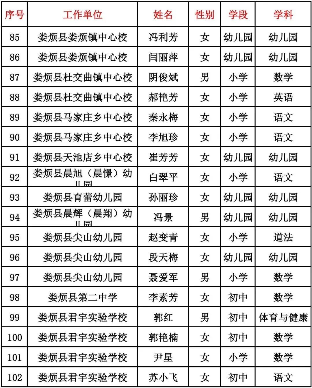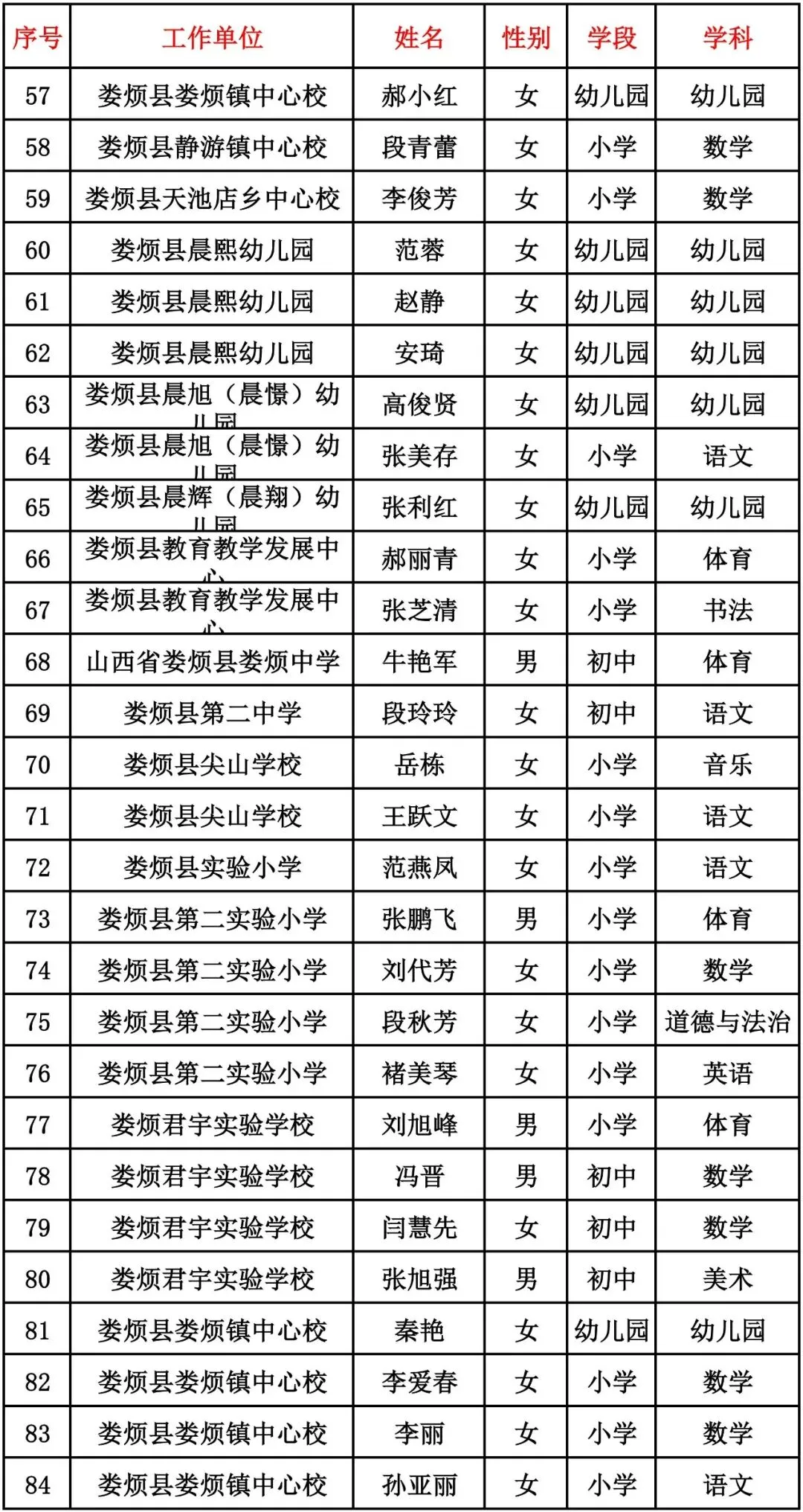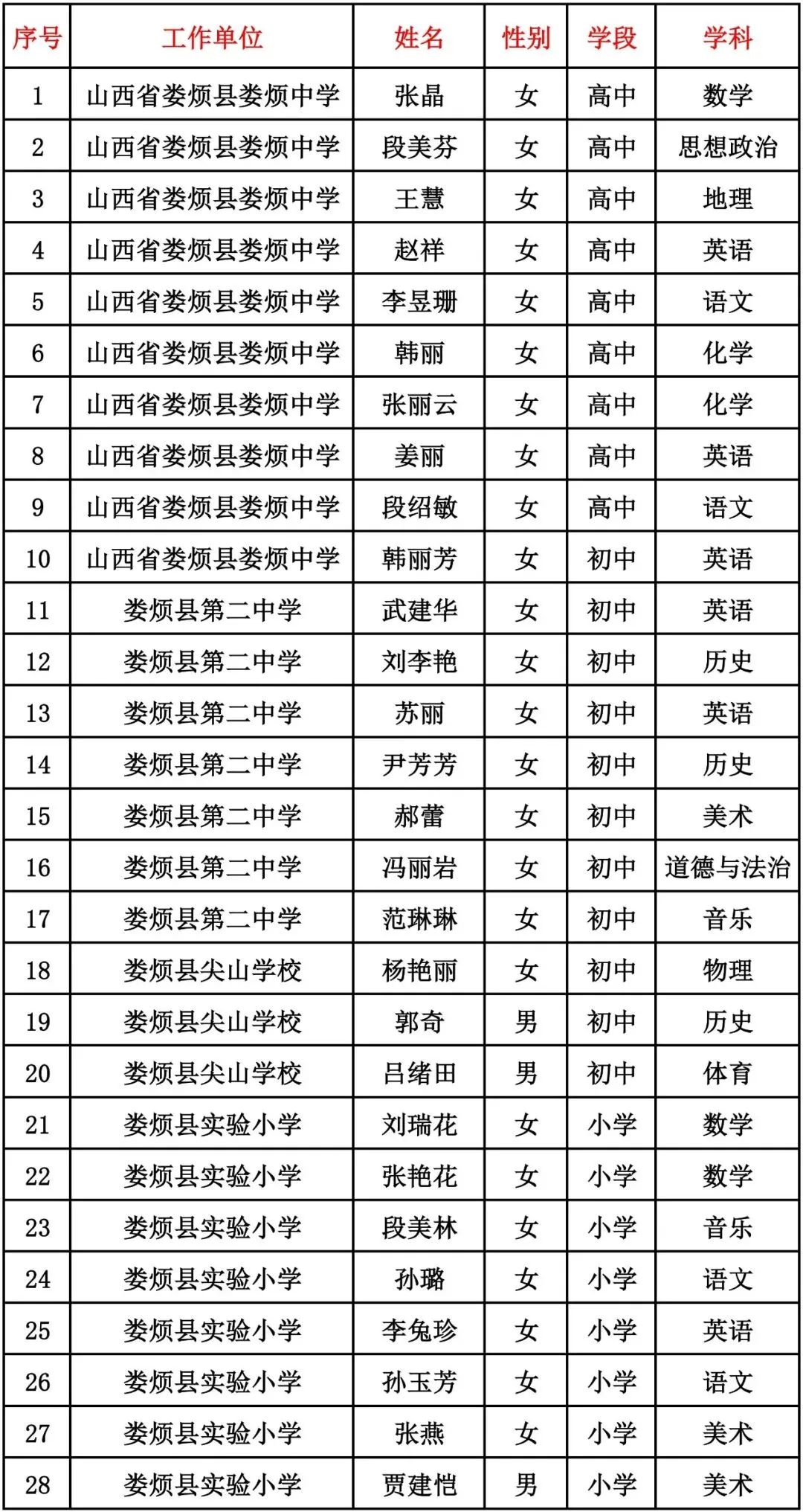 2025年度娄烦县中小学教师一级职称拟任职资格人员名单公示