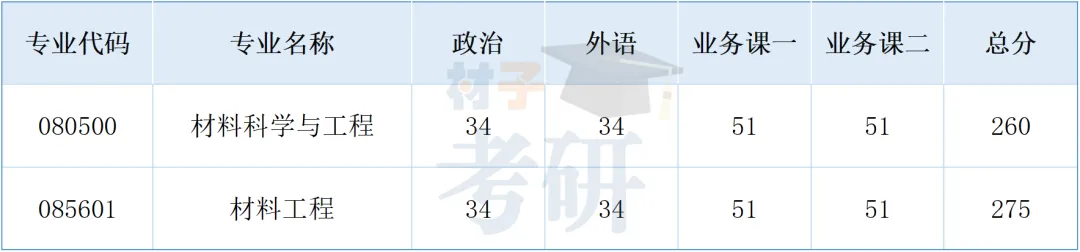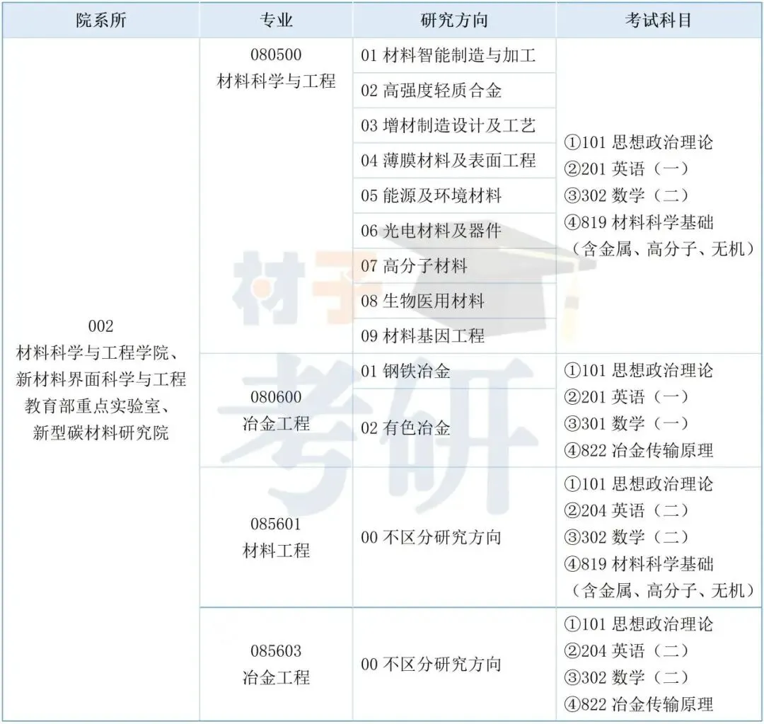 学硕考试科目为:政治、数二、英一、材料科学基础(819);专硕考试科目为:政治、数二、英二、材料科学基础(819)。专业课考查科目专硕和学硕一样且试题也一样。