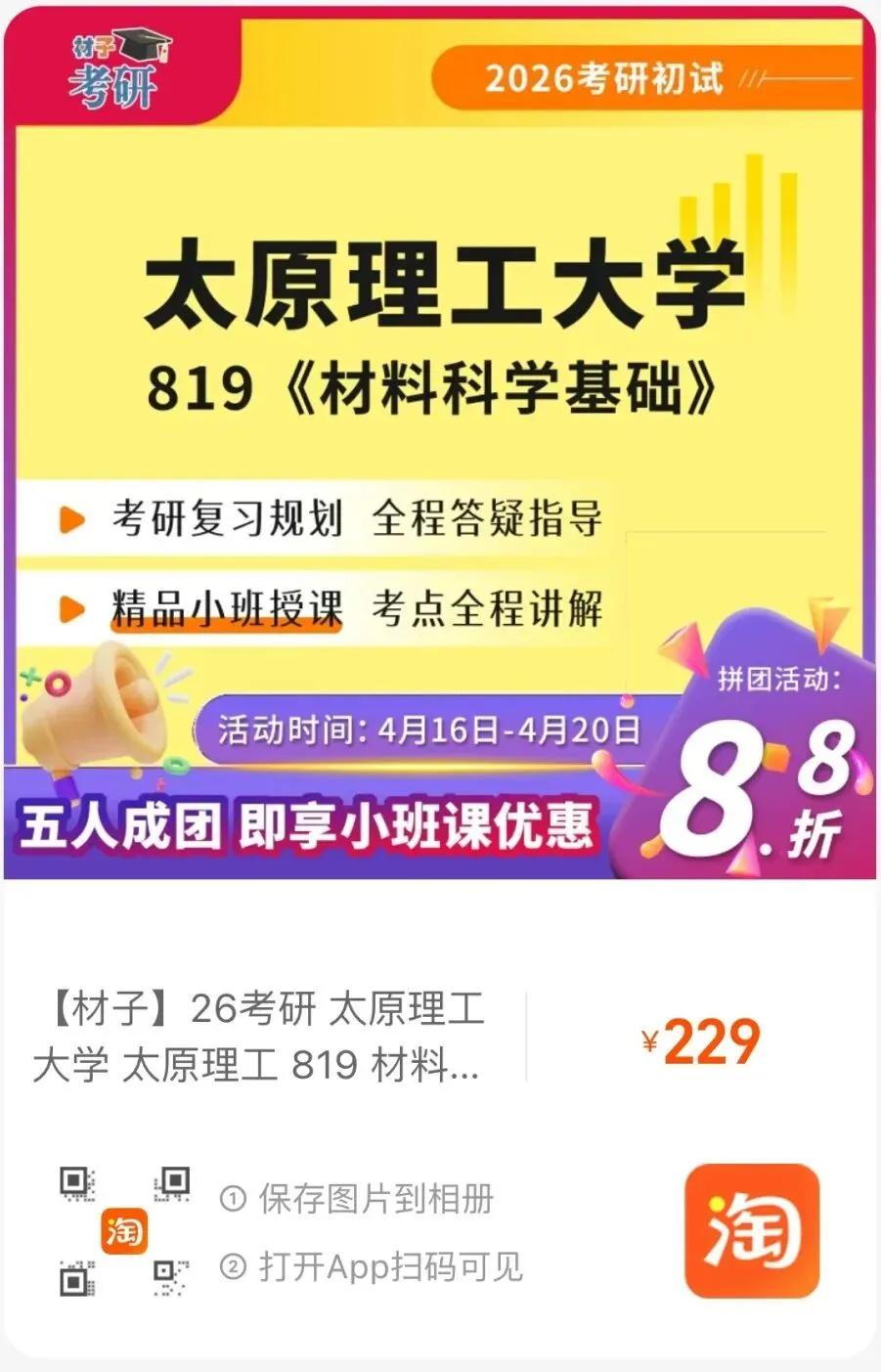 一志愿报考太理的同学如果未能录取,一般只能调剂到其他普通高校,很少一志愿校内调剂,调剂大部分针对考取985/211高校学生,所以建议大家既然决定报考太理就要认真准备,按照材子考研给大家准备的资料认真去准备基本就没什么问题,小班课更能带着大家全流程复习指导,复习更高效便捷。