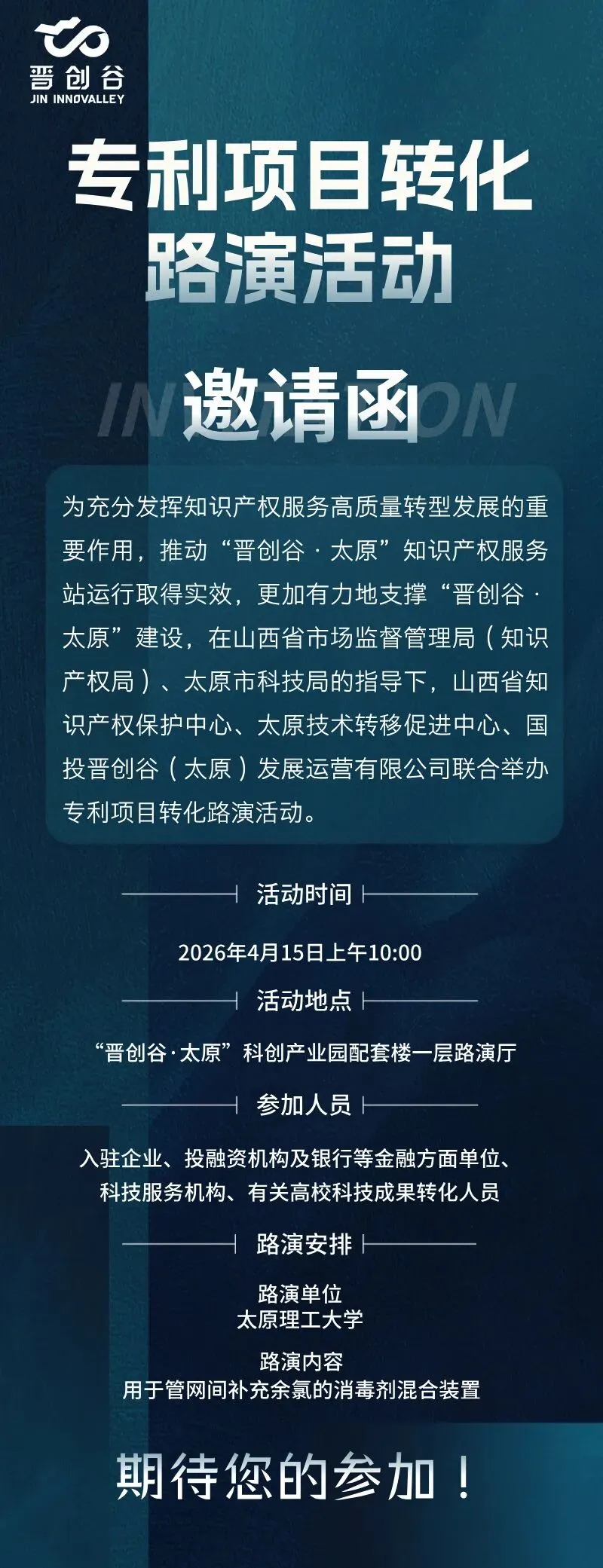 >信息发布丨关于举办“晋创谷·太原”2026年(第7期)成果路演专利转化活动的通知