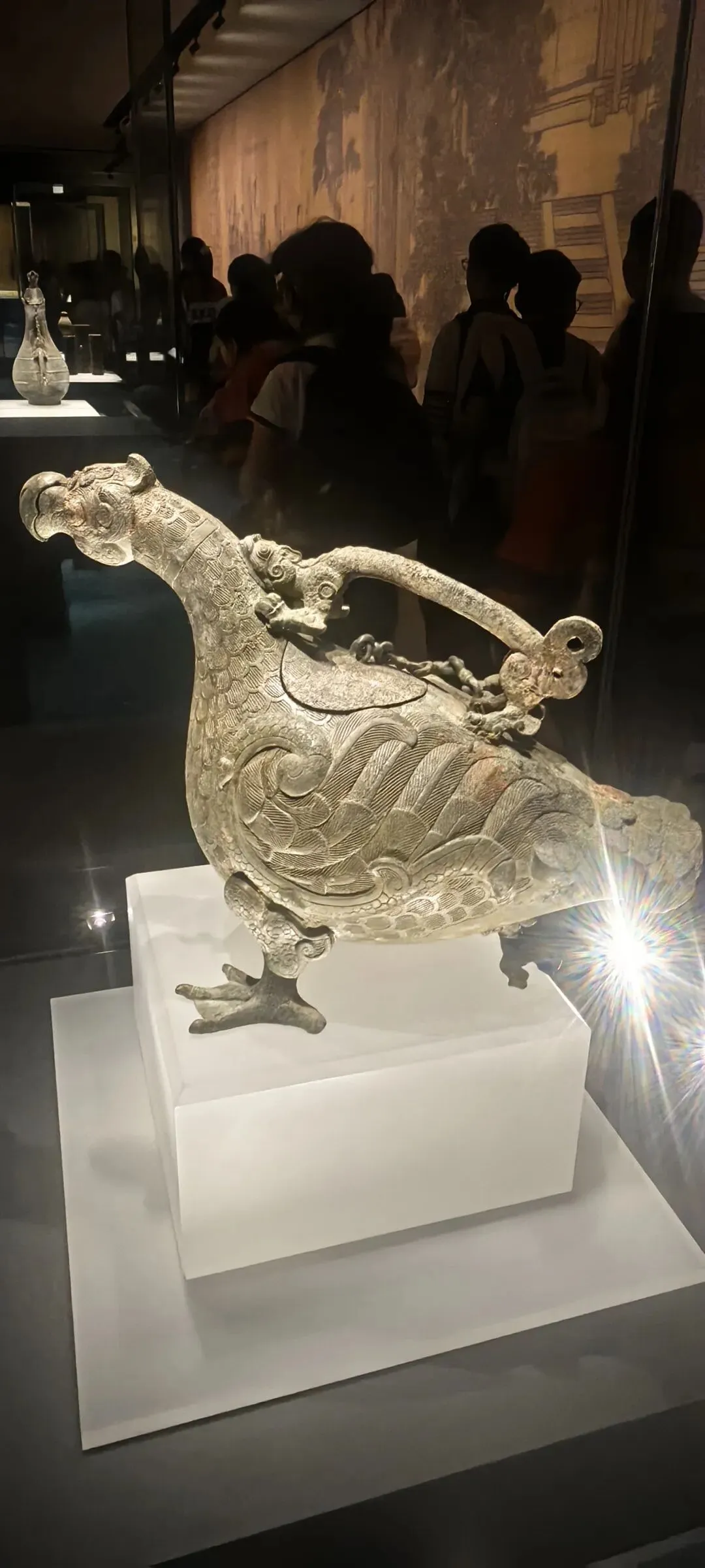 另外这几只尊和铜灯也值得大家多看几眼。这个雁鱼灯出土的挺多了,陕历博还把它作为十八件镇馆之宝,现在应该换换了。印象中,河北博物院、南昌海昏侯博物院也都有。