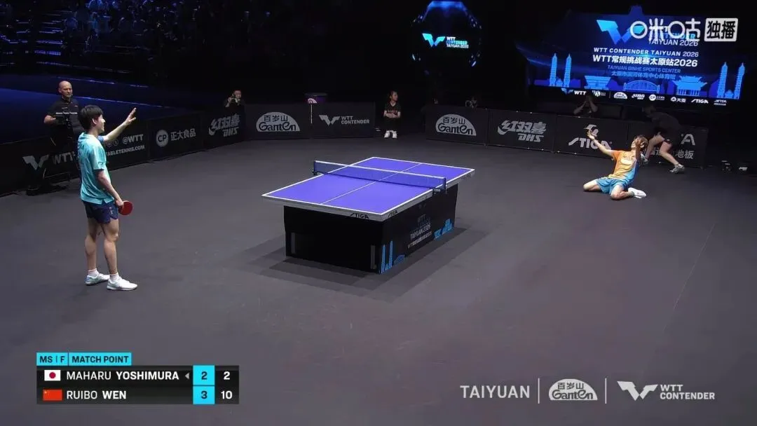 压轴进行的男单决赛中,温瑞博对阵32岁的日本老将吉村真晴。后者大赛经验极为丰富。