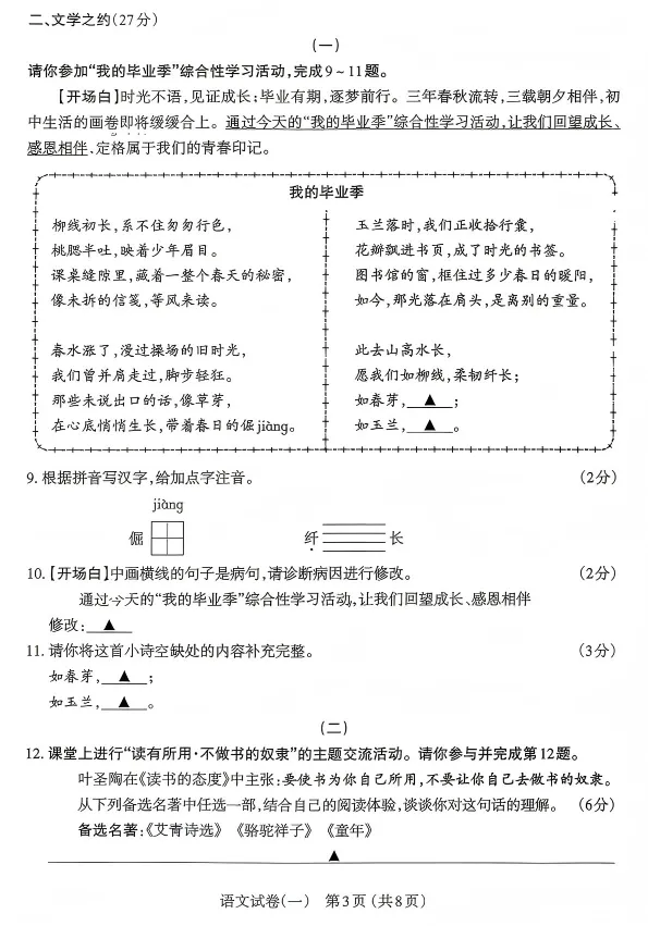 【太原市】2026年中考一模语文试题及答案!