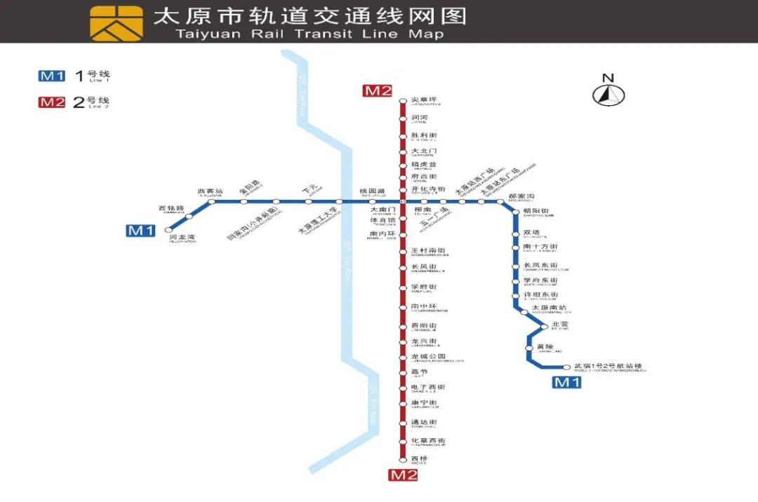 太原地铁是太原市核心城市轨道交通系统。2020年12月26日,2号线正式开通,太原迈入“地铁时代”。2025年2月22日,1号线开通运营,与2号线构成“力”字型线网骨架。