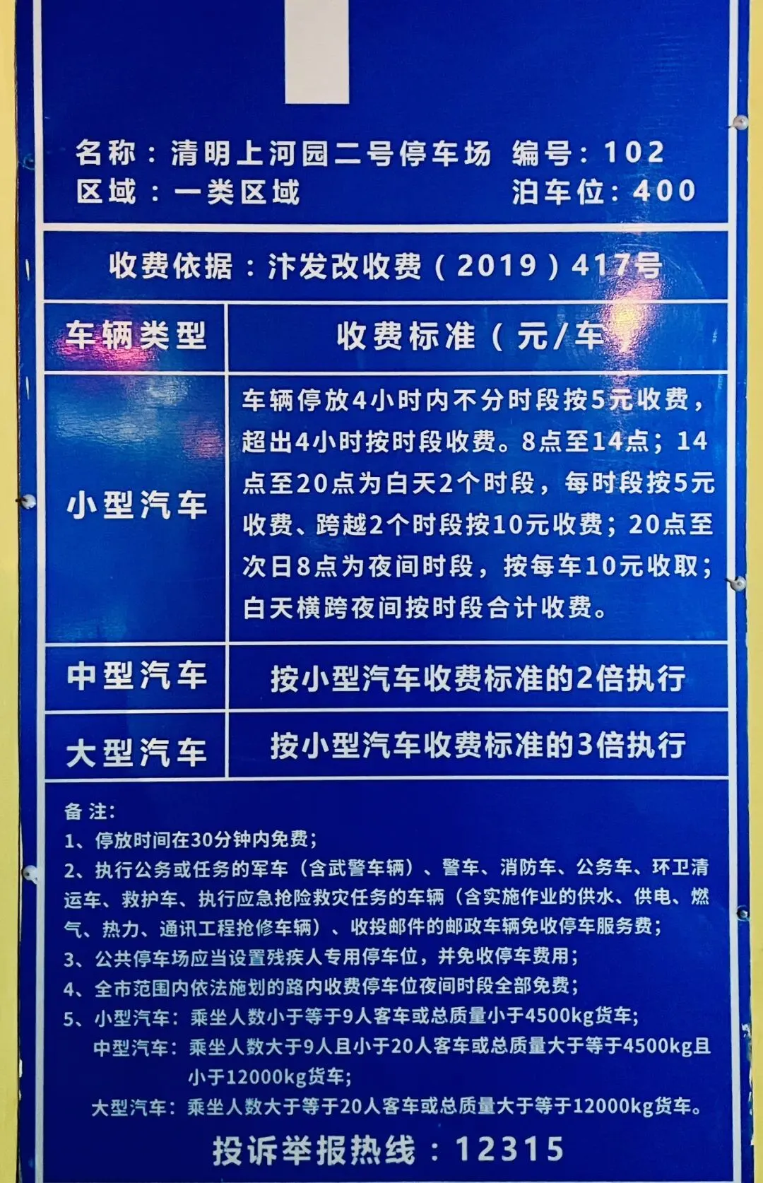 杭州市,10元一小时,全天170元封顶,前15分钟免费。杭州市,核心区域8~20时,首小时内5元/辆*半小时,首小时后6元半小时,夜间5元一次。杭州市某目的地充电站,白天20元每小时,单日360元封顶,另充电1.6元每度。杭州基本是作者此次外出见到收费相对而言最贵的地方。义乌市某商贸城,前2小时免费,之后每小时递增5元。绍兴市鲁迅故里景区,小车10元每次4小时,之后每4小时加收10元,在一定程度上大致相当于每小时2.5元;摩托车3元每次。绍兴市鲁迅故里景区附近,每4小时5元,几乎类似于每小时1.25元。衢州市,每小时5元,前15分钟免费,当日50元封顶。湖州市南浔古镇,2小时内5元,之后每小时3.5元叠加,前半小时免费。湖州市南浔区道路旁,首小时3.5元,之后每半小时1元叠加,前一小时免费。嘉兴市海盐县道路,首小时内2元,之后每半小时3元叠加,但是20元封顶。嘉兴市海盐县海滨公园商业街,首小时免费,4小时内5元。长沙市坡子街,2小时内20元,之后每小时5元递增,相较于太原是起步价更高,如果停满一天,封顶价格类似。岳阳市,白天每小时3元,夜间每小时1元,1小时内免费,当日封顶25元。岳阳市,1小时内10元,1~3小时20元,3~6小时30元。这里说作者在此次出行中遇到的非省会城市里单价较高的停车场。南昌市,前2小时免费,2~3小时5元每次,之后每小时2元递增,当日封顶20元,南昌只是路过一下,不太了解江西省会南昌市其他地方的情况。景德镇市,前2小时免费,2~4小时5元,之后每小时1元递增。上饶市婺源县,首小时2元,之后每小时1元叠加,前20分钟免费。黄山市歙县徽州文化文创中心,首小时3元每次,一小时后每小时1元叠加,前半小时免费。黄山市歙县徽州古城,首小时6元,之后每小时3元叠加,前半小时免费。日照市,旺季首小时3元,之后每半小时2元叠加,淡季有所减少。日照市,白天3元每小时,夜间1.5元每小时,前一小时免费。安阳市殷墟博物馆,白天5元每次,夜间10元每次,前半小时免费。开封市清明上河园,4小时内5元,超4小时按时段计费,前半小时免费。山西省太原市图书馆,每半小时1.5元,新能源免费,限时开放7:30~22:15。这里的价格在太原城六区并不算高,甚至处于中下游。
