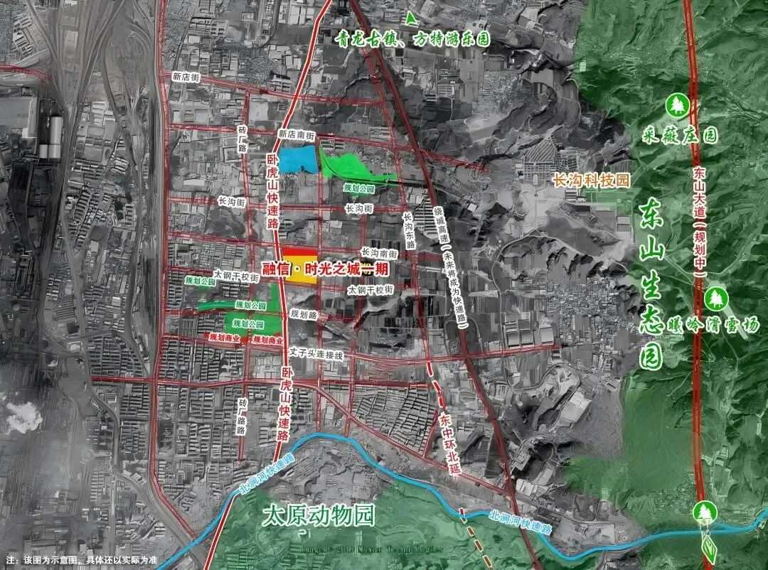 项目总占地约1200亩,规划340万方体量,内部配建7所幼儿园、3所小学,与杏花岭区第十一中学、第四实验中学一街之隔;