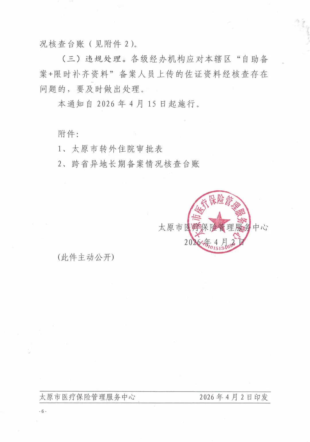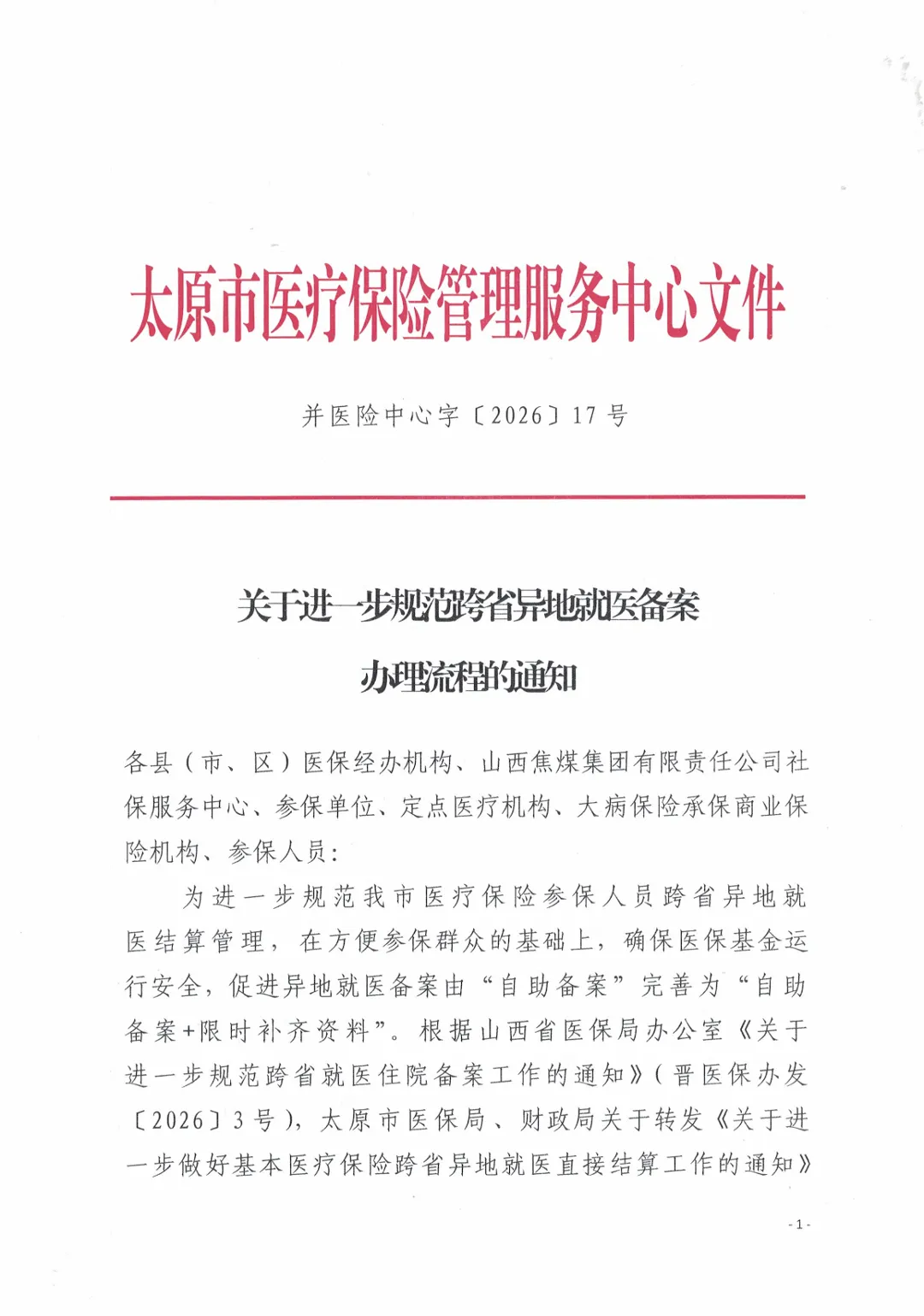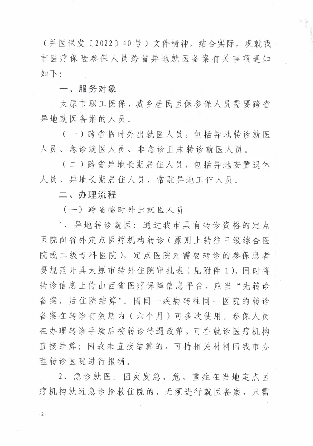 >【异地就医】2.太原市关于进一步规范跨省异地就医备案办理流程的通知