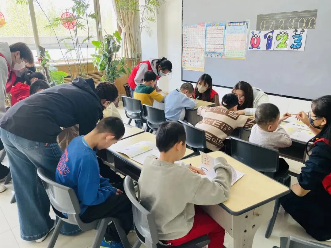 在基础认知环节,志愿者化身趣味 “数字老师”,用贴近儿童生活的比喻,带领孩子们认识 0—10。“数字 0 像圆滚滚的小汤圆,数字 1 像笔直的小铅笔”,璐璐老师手持彩色数字卡片,带领孩子们闯关数字游戏。面对注意力易分散的孩子,志愿者们俯身耐心引导,用鼓励与包容给予孩子信心。孩子们睁着好奇的眼睛,认真聆听、跟随比划,专注又可爱。