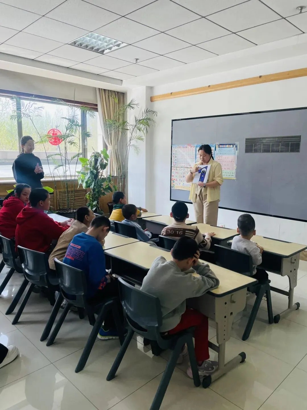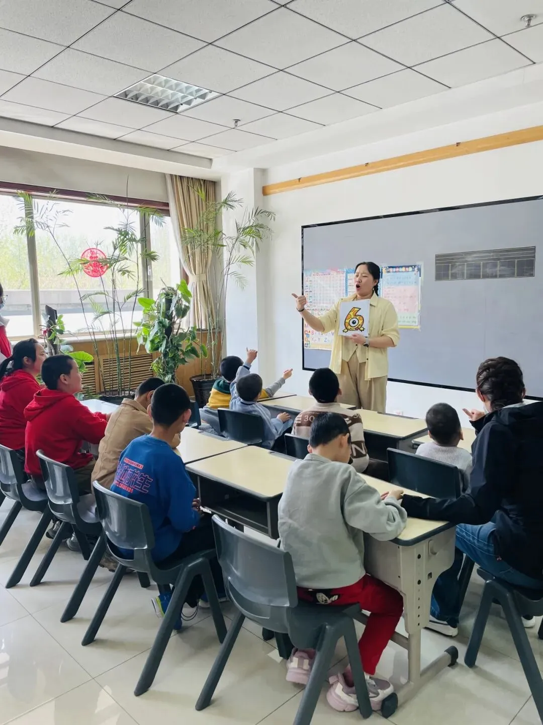互动游戏环节将现场氛围推向高潮。志愿者精心设计 “数字接龙” 趣味游戏,让孩子们在玩乐中巩固知识。游戏中,孩子们踊跃开口、大声报数,清脆的声音与欢声笑语充满整个教室。原本腼腆的孩子也逐渐放开,主动与志愿者互动、击掌,笑容愈发灿烂。