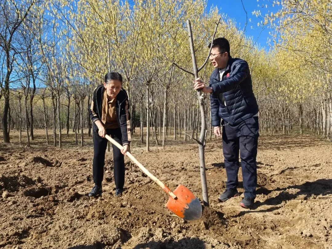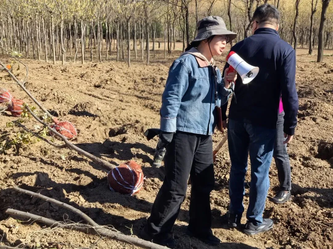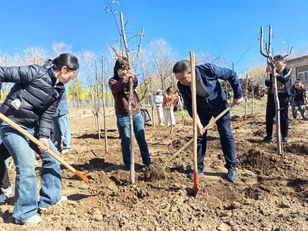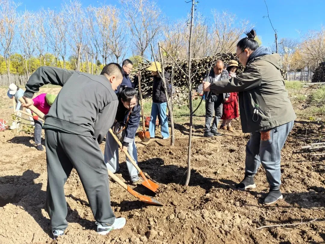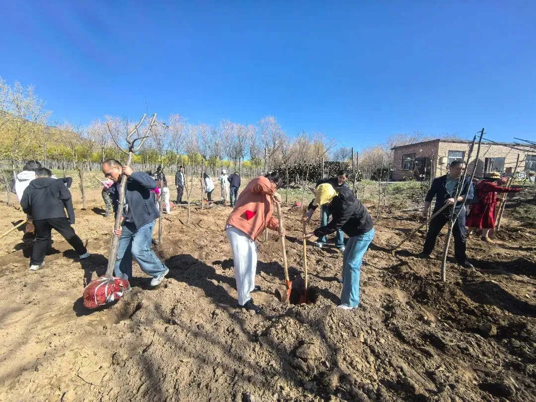 上午9时许,盟员们抵达植树现场。在林区技术人员的专业指导下,大家分工协作、默契配合,挥锹铲土、扶苗正干、踏实覆土、整垄围堰,每一道工序都一丝不苟、规范有序。经过一个多小时的辛勤劳作,共栽植玉露香梨树苗100余株。新栽苗木整齐排列、迎风挺立,为初春的东西山林区再添一抹盎然绿意。
