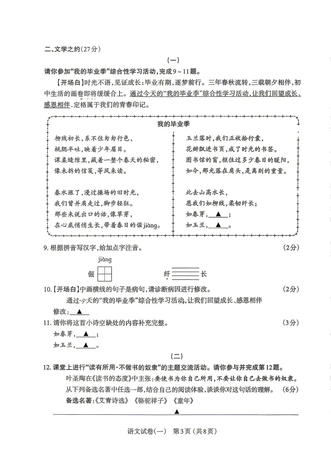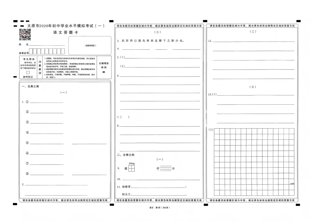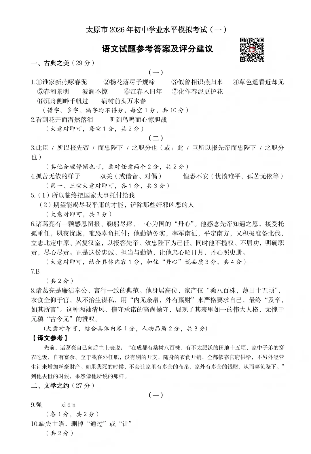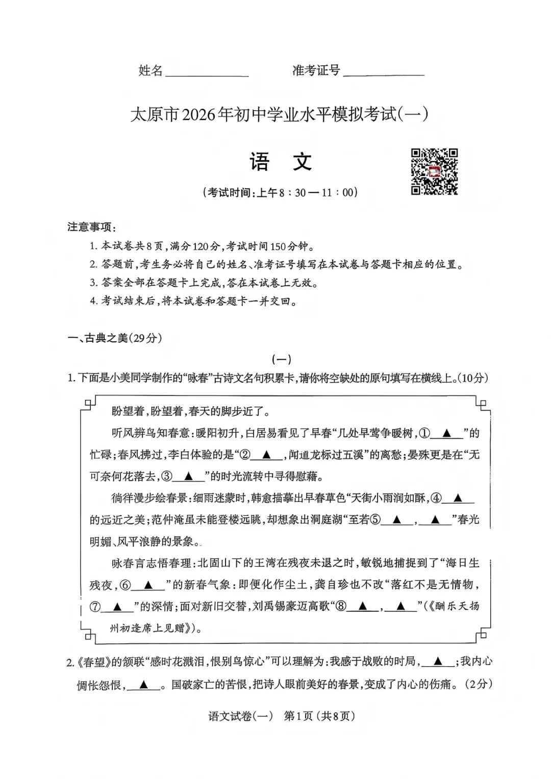 【太原一模】太原市2026年学业水平模拟考试(一)0413语文试卷+解析