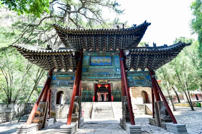 这座宏伟的大殿是藏山祠的正殿,正殿内供奉的是藏山管风管雨的灵感大王,也就是故事的主人公赵武,正殿的始建年代已经无考,据碑文记载,在金、宋、元、明、清各代都做过重修。也就是说大殿距今最少有800多年的历史。正殿的外观为五脊六兽、龙头象柱,意喻护左扶右,非皇家建筑不得使用。内部采用斗拱和金代减柱法,既经济又美观宽敞。在古代凡是非常重要或带纪念性的建筑物,才有斗拱。这种建筑最富有装饰性,是典型的皇家建筑风格。