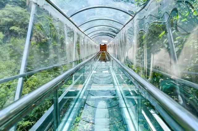 森林玻璃滑道——藏山天门玻璃滑道,全长368米,宽约1.2米,坡度26°,整体落差128米。游客在玻璃滑道里滑行,靠重力自然下滑,全程穿梭于丛林中,不仅能体验到速度与激情的碰撞,还能将藏山美景尽收眼底。是集高空极限挑战、休闲娱乐和代步于一体的一项游乐项目,全程游玩惊险、刺激、安全。