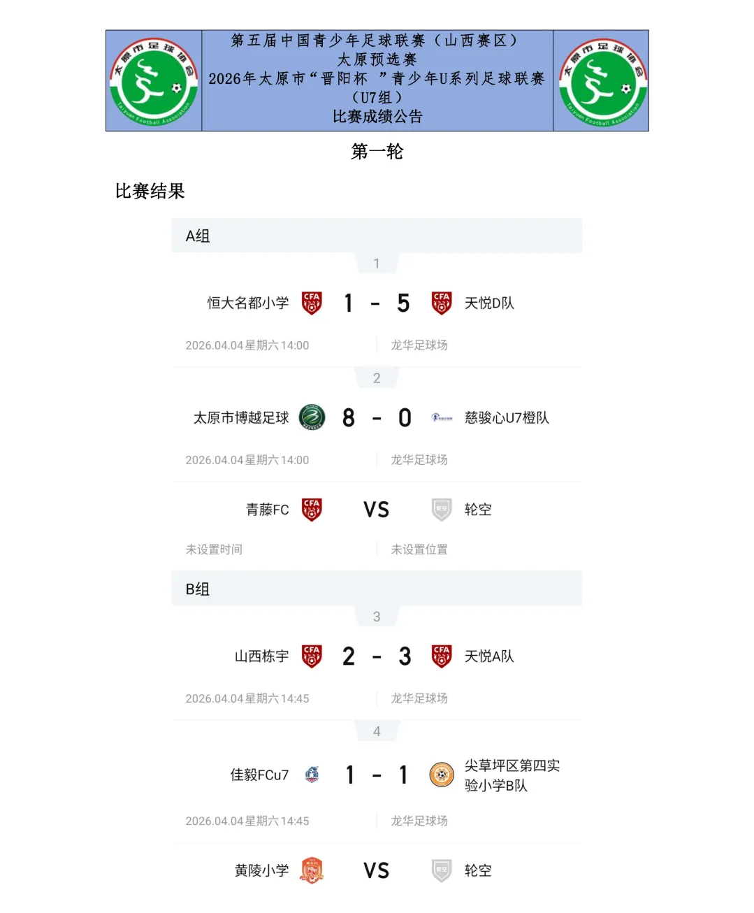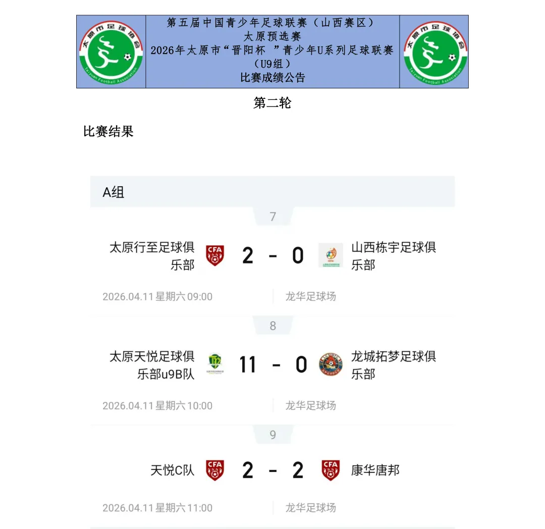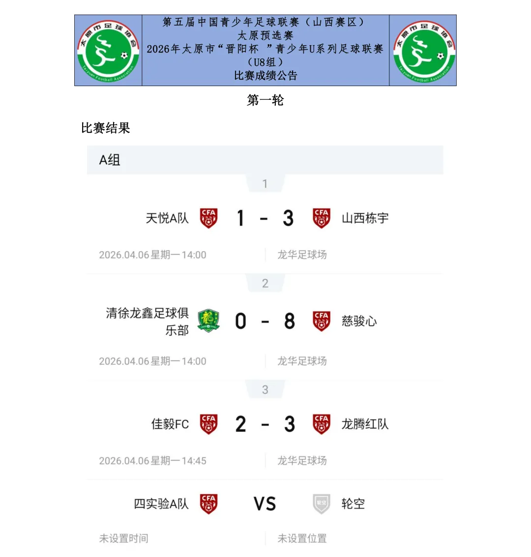 4月的太原,春意盎然,绿茵场上已燃起熊熊战火。4月4日,备受瞩目的第五届中国青少年足球联赛(山西赛区)太原预选赛2026年太原市“奔跑吧·少年”足球赛暨“晋阳杯”青少年U系列足球联赛(U7、U8、U9、U10、U11、U12组)首轮比赛正式鸣哨开赛,来自全市各县(市、区)的学校、青训机构及足球俱乐部的多支少年劲旅,怀揣足球梦想,展开了激烈角逐。