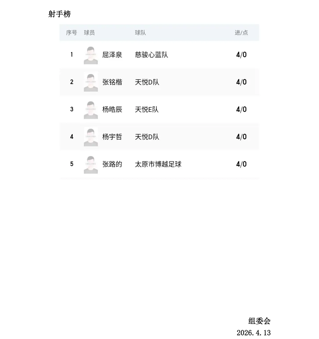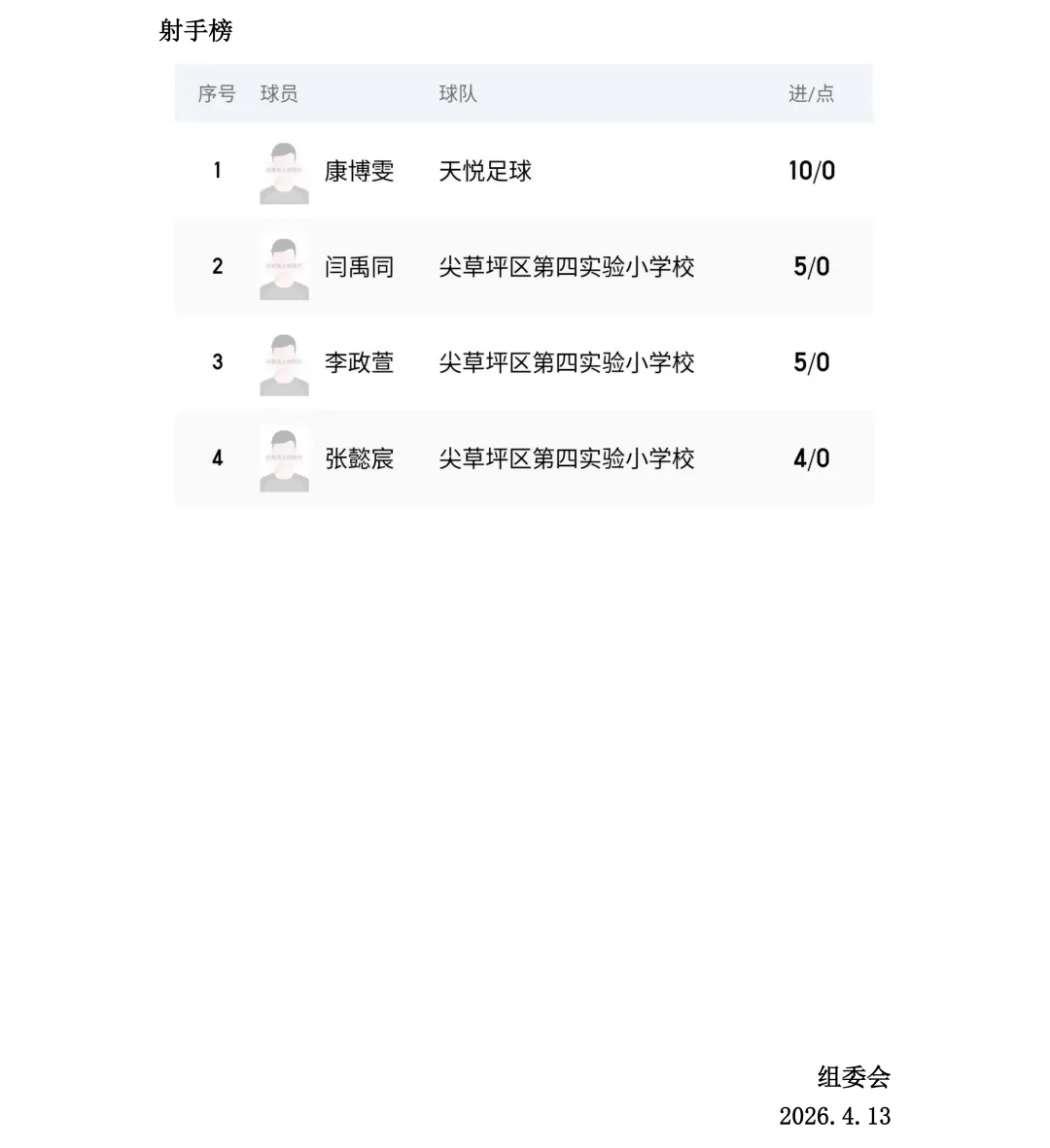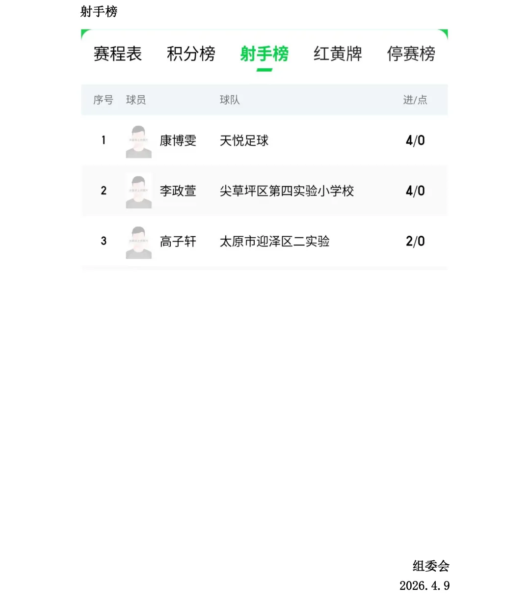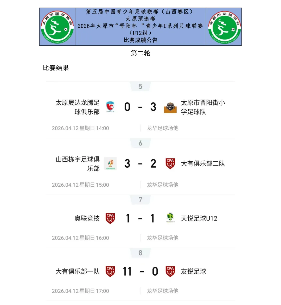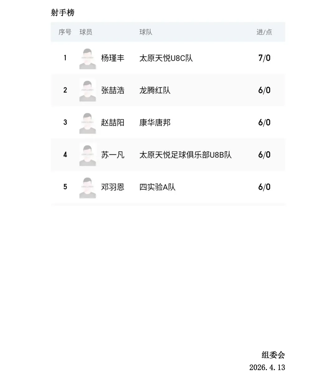 比赛设U7、U8、U9、U10、U11、U12六个年龄组别,其中U7、U8为五人制,U9、U10、U11、U12为八人制。两轮比赛结束后,各组别积分榜、射手榜初露峥嵘,小球员们用汗水与拼搏诠释了“奔跑吧·少年”的真正含义。经过前两轮的激烈拼杀,各组别比赛结果已新鲜出炉。以下为各组别前两轮战报。
