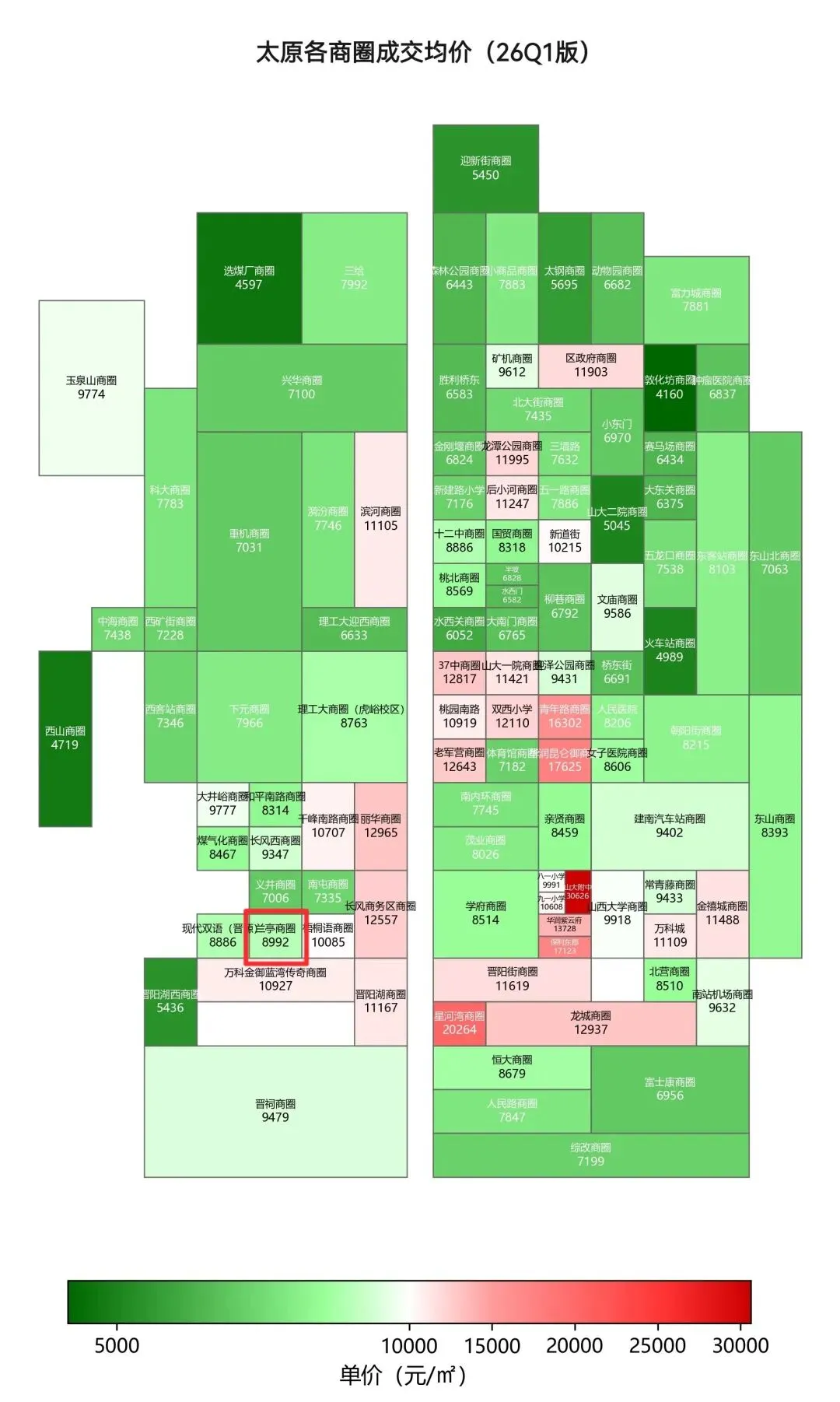 小区属于晋源区兰亭商圈,兰亭商圈成交均价9000左右,略低于全市平均水平。