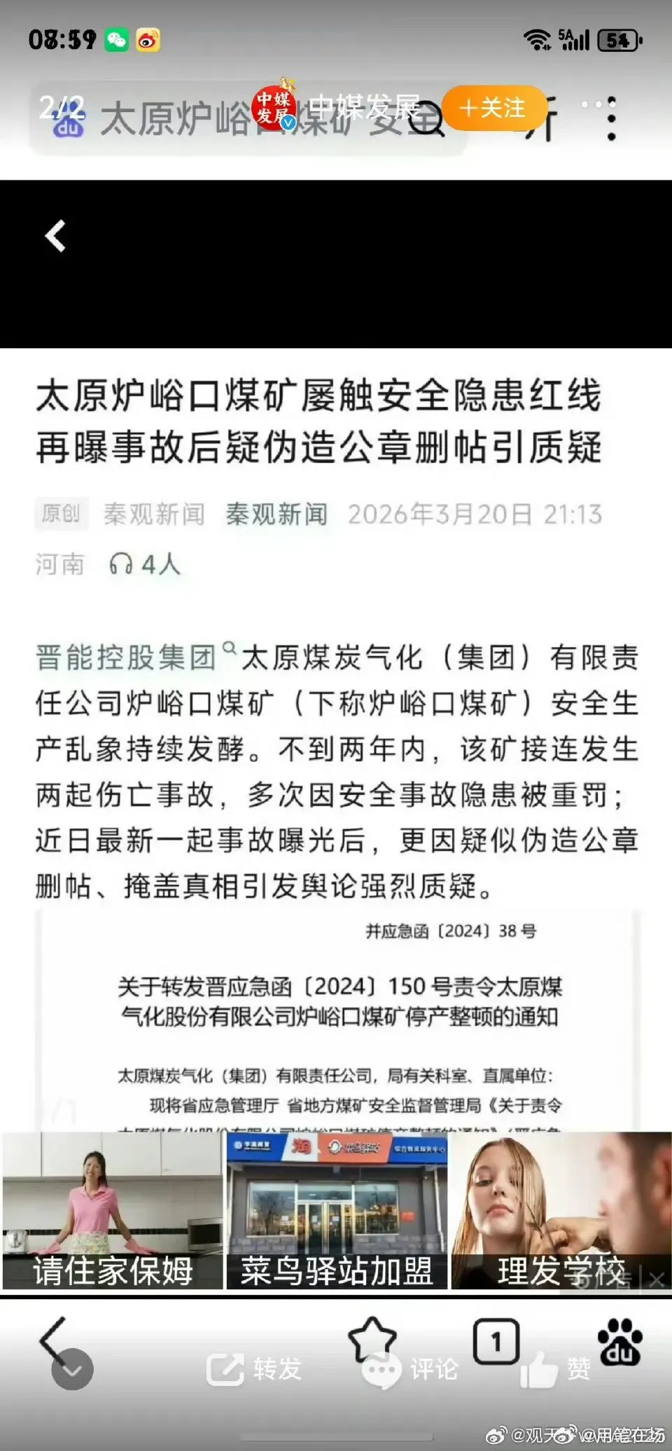 近日,晋能控股集团旗下太原煤炭气化(集团)有限责任公司炉峪口煤矿,因一起安全生产事故及后续疑似伪造公章删帖事件,再次引发舆论广泛关注。作为省属大型能源企业下属煤矿,该矿不到两年内连发伤亡事故、多次因安全隐患被重罚,此次舆情风波更暴露出企业在安全生产与舆情管理中的双重问题,值得持续关注。