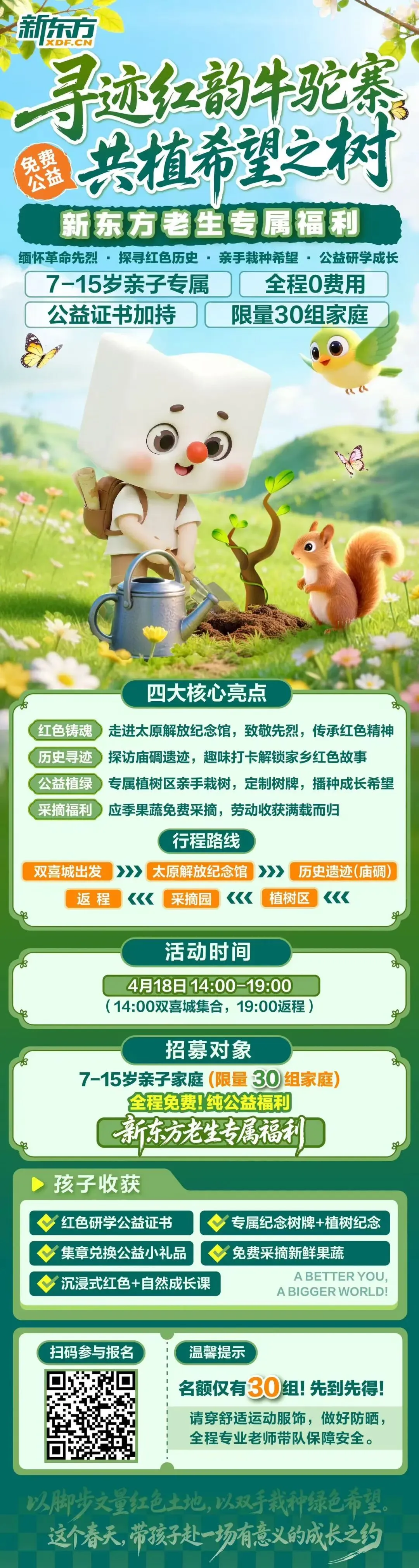 太原家长速看!这个周末,新东方邀你免费带娃种树,仅限 30 组!