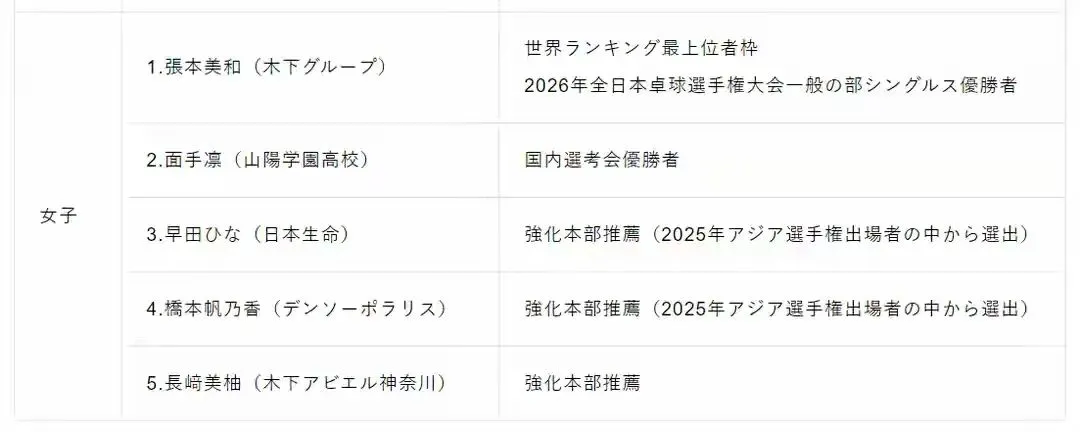 大藤沙月的落选,同样充满无奈。日本乒协2月25日就敲定世乒赛女团名单,早田希娜、张本美和、长崎美柚、桥本帆乃香、面手凛入选,世界排名第12的她,反而输给了排名第16的长崎美柚。日本队选拔更看重团体赛适配性与大赛履历,长崎美柚曾多次征战世乒赛,双打能力突出,与队友配合默契,而大藤沙月虽单打强势,却在团体赛协作、大赛经验上处于劣势,即便近期连战连捷,也没能撼动教练组的决定。