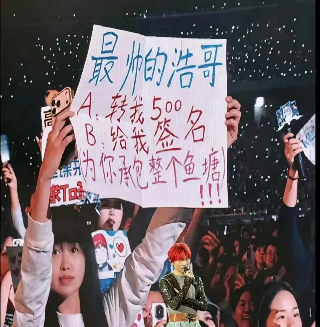 “最帅的浩哥:A.转我500 B.给我签名 承包整个鱼塘”。