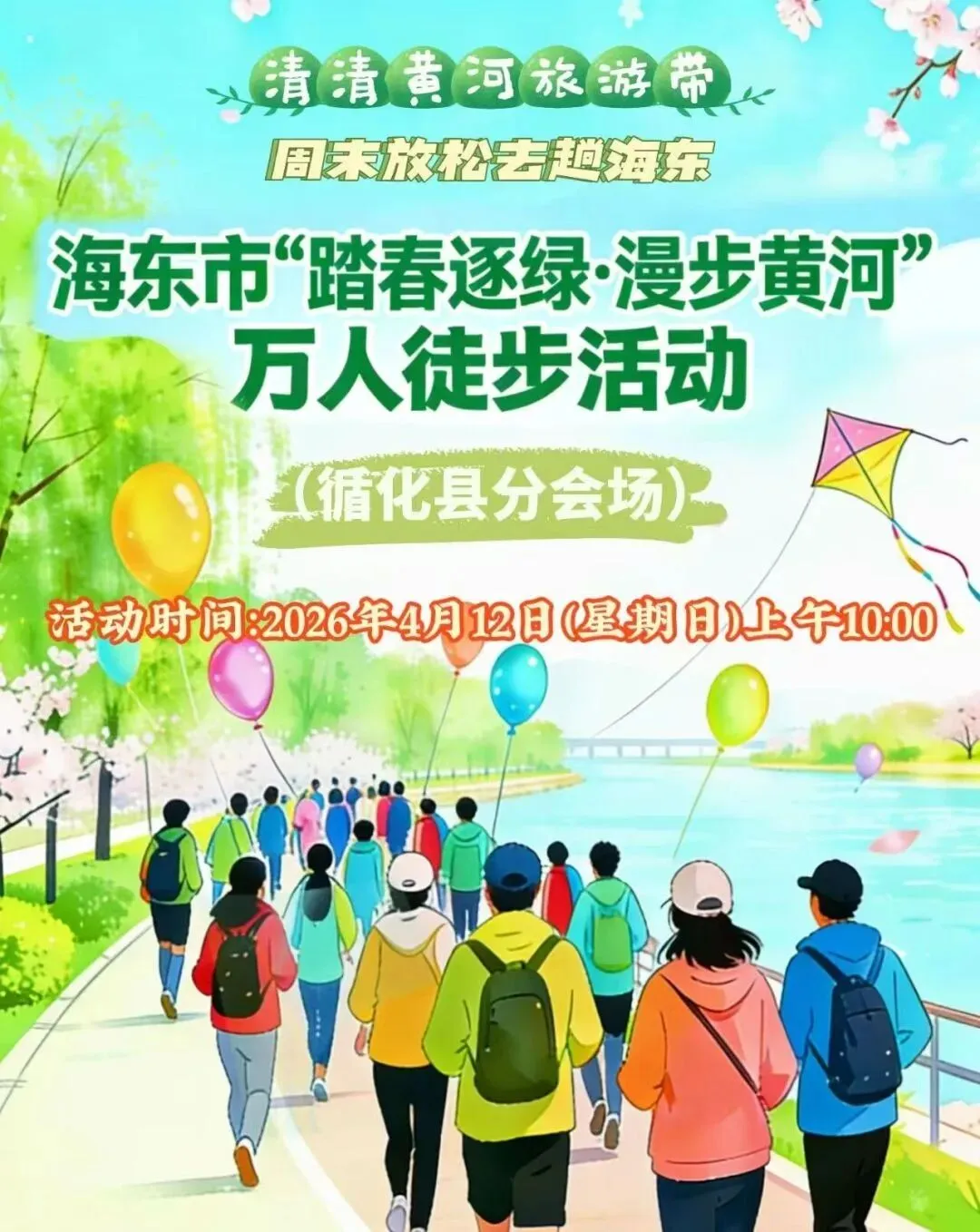 本次活动以“清清黄河旅游带 周末放松去趟海东”为主题,从东门十字出发,串联西门十字、驼泉十字、政务中心十字、融合家园、伊隆生态园等循化地标,最终抵达乙麻目杏花村,全程五公里,沿途尽览循化春日盛景与黄河风光,现场氛围热烈,大家结伴而行,在徒步中感受春日美好。
