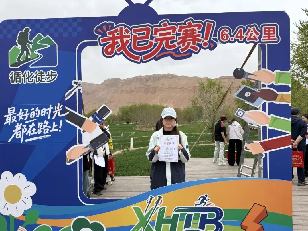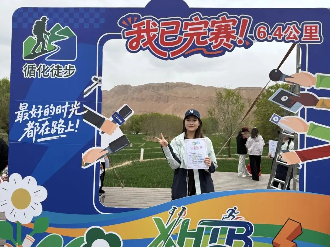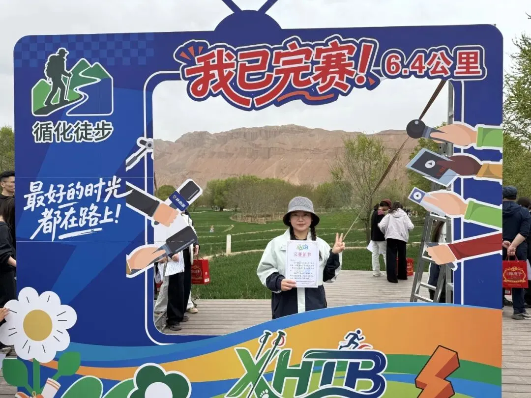 她们始终坚信:不必用世俗的标准定义人生,而要以自己的方式热烈地奔赴每一场热爱。于是,她们不把徒步当作简单的打卡,而是把每一步都踏成对自我的挑战、对青春的践行。她们一边欣赏着黄河岸的烂漫春色,一边为身边的参赛选手加油鼓劲,用活力感染着每一个同行的人,用脚步丈量着循化的每一寸土地,最终全员顺利完赛,收获了专属完赛证书。